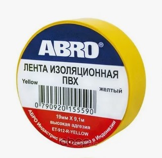 ABRO Изолента желтая маленькая 18мм*9,1м (уп 10шт)