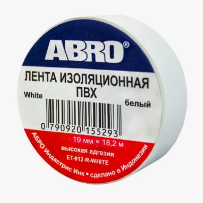 ABRO Изолента белая маленькая 18мм*9,1м (уп 10шт)