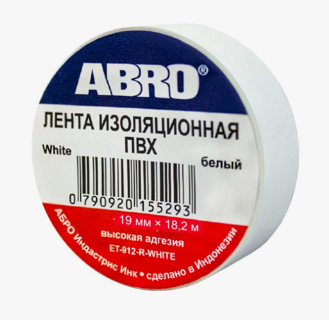 ABRO Изолента белая маленькая 18мм*9,1м (уп 10шт)
