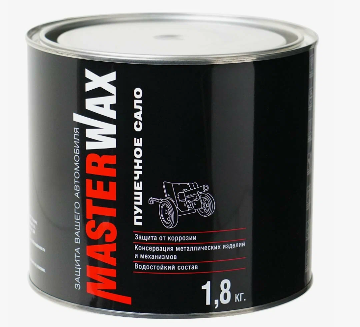 Пушечное сало MASTERWAX предназначено для консервации металлических поверхностей при длительном хранении, а также в качестве антикоррозионного материала для временной защиты металлических поверхностей. Повышенная вязкость , высокая адгезия и высокая температура каплепадения позволяют создавать надежные покрытия на вертикальных и горизонтальных поверхностях, в том числе на днище автомобиля.