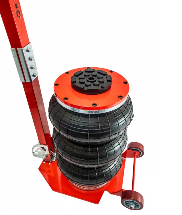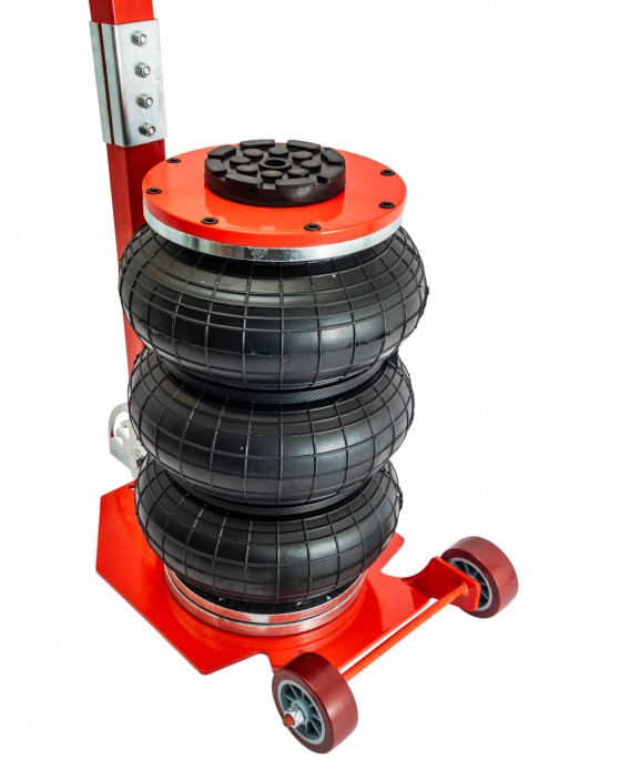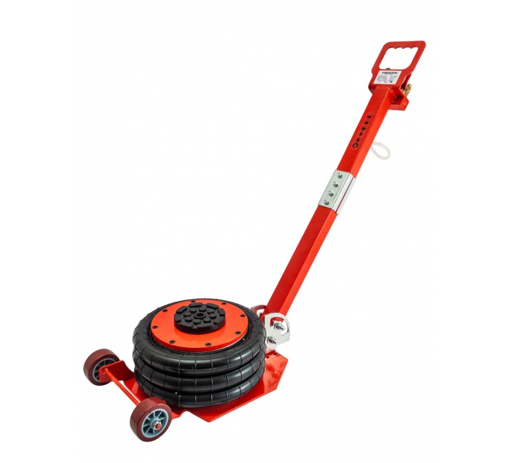 Подкатной пневматический домкрат KINGQUEEN, 3т, подъем 15-40см, KQ-HJP03 представляет собой трехсекционный пневмобаллон на тележке с двумя прорезиненными колесами. Таким образом, его можно перемещать по любой горизонтальной поверхности. Домкрат оснащен рукояткой с регулируемым углом, что обеспечивает не только удобство перемещения, но и позиционирования под автомобилем. Управление режимами “подъем/опускание” производится рычажком, расположенным в верхней части рукоятки.
