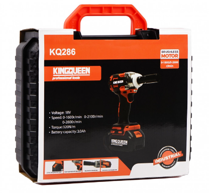 Гайковерт KINGQUEEN АКБ, 1/2, 320N/m, KQ286 нужен для оперативного закручивания или откручивания гаек или болтов.