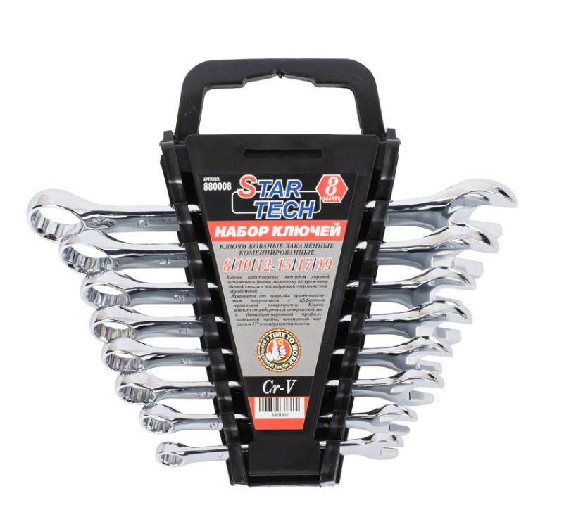 Набор ключей комбинированных из 8 шт в холдере Размеры ключей — 8, 10, 12, 13, 14, 15, 17, 19