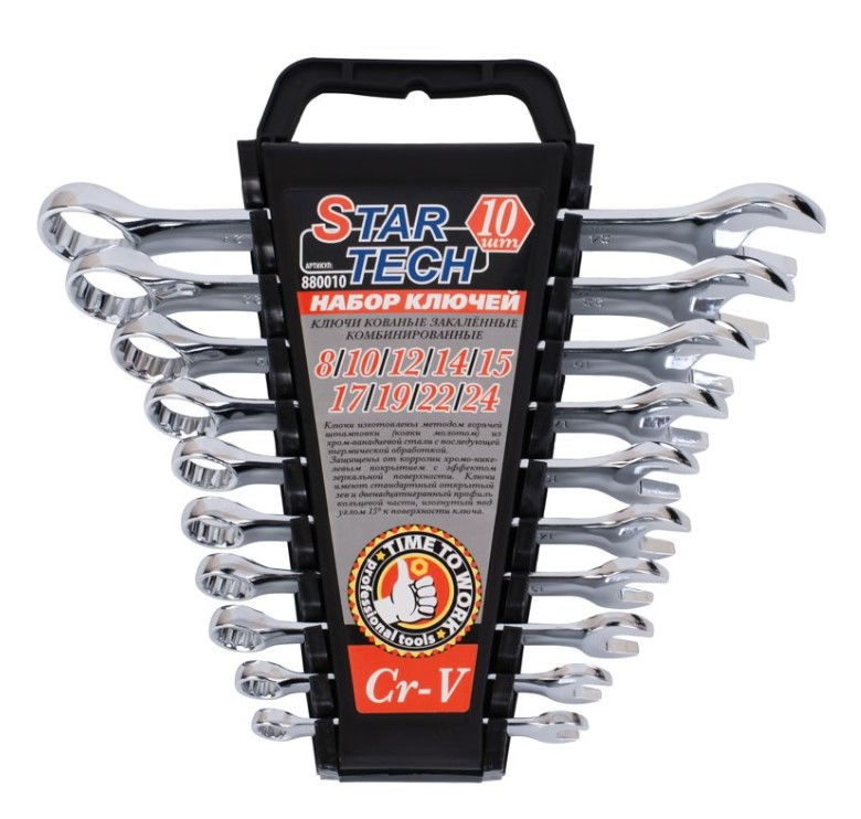 Набор ключей комбинированных из 10 шт в холдере Размеры ключей — 8, 10, 12, 13, 14, 15, 17, 19, 22, 24
