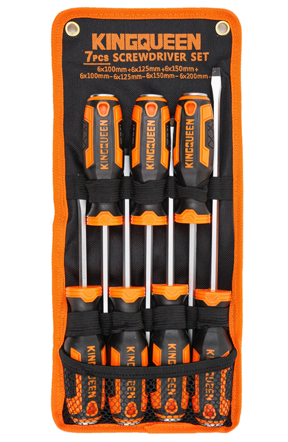 Набор ударных отверток KINGQUEEN 7 предметов предназначен для ремонтных, слесарных работ и починки малых и средних механизмов. Комплект имеет удобно спроектированные формы рукояток и стальные стержни с магнитным наконечником.
