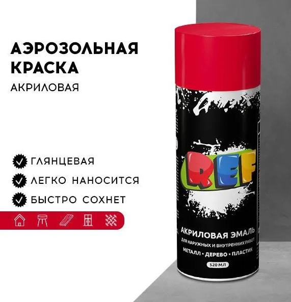 Будьте первыми, кто оставит отзыв “REF Эмаль акриловая универсальная алый (520мл)”