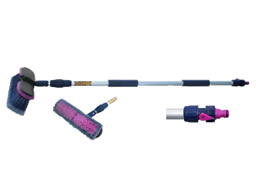 2-х секционная щетка с краном для воды. Щетка для высококачественной мойки кузова. Изготовлена с применением вспененного пластика. Имеет съемную рукоятку. Новейшие материалы и специальная технология позволяют щетине впитывать и удерживать большее количество воды.